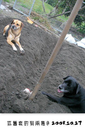 小狗隊在土裡東挖西找, 為的其實就是要吃雞母蟲...