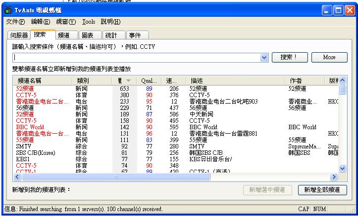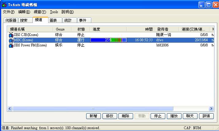選取你要的那台,雙擊它就會播放了(有一樣的台名,選觀眾數多的比較不卡)