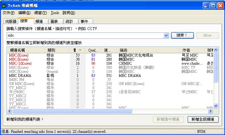 也可以點"新增選中頻道", 把常看的台,如SBS和MBC, 加入頻道當中